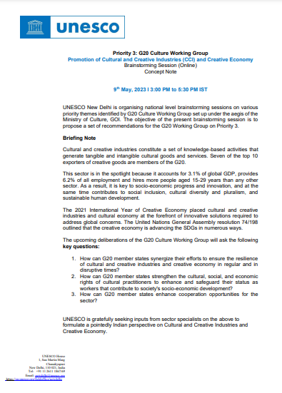 UNESCO New Delhi recently organized a national-level brainstorming session on Priority 3 of the G20 Culture Working Group, focusing on ...