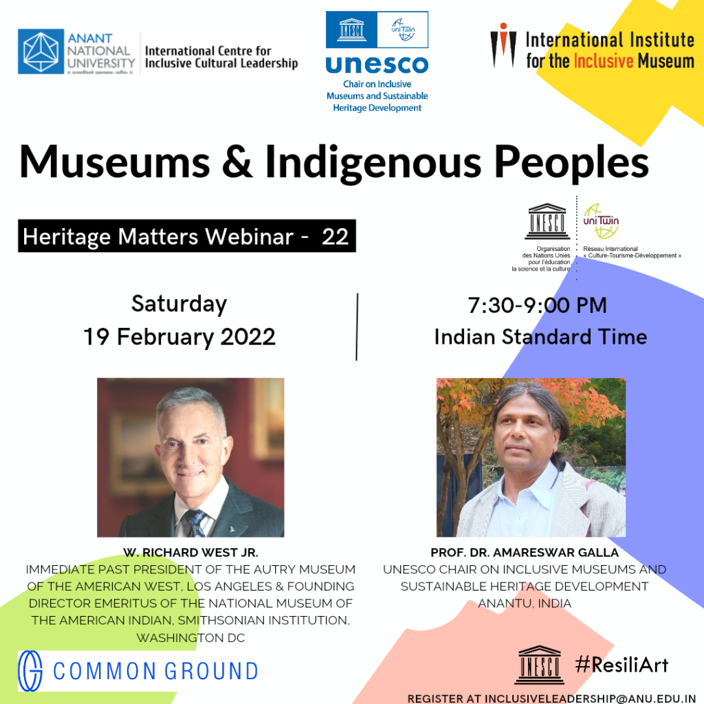 Host: Professor Dr Amareswar Galla, UNESCO Chair on Inclusive Museums and Sustainable Heritage Development, AnantU, Ahmedabad; Emeritus Faculty at the Australian National University, Canberra; and Chairperson, International Research Network Conference on the Inclusive Museum, Philadelphia, 2022. (https://onmuseums.com)