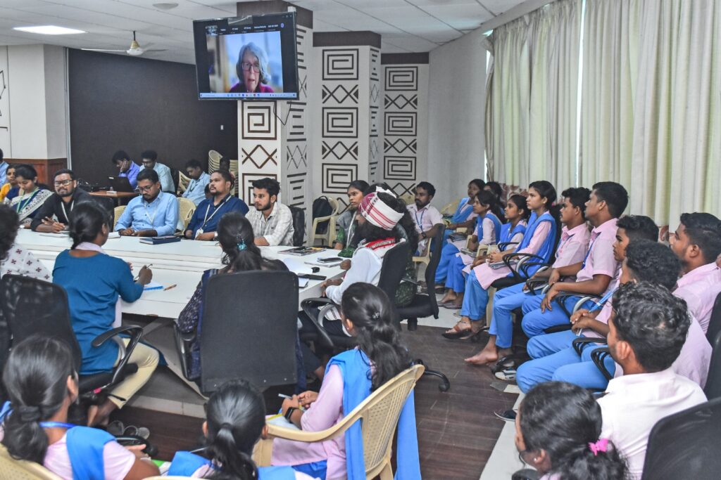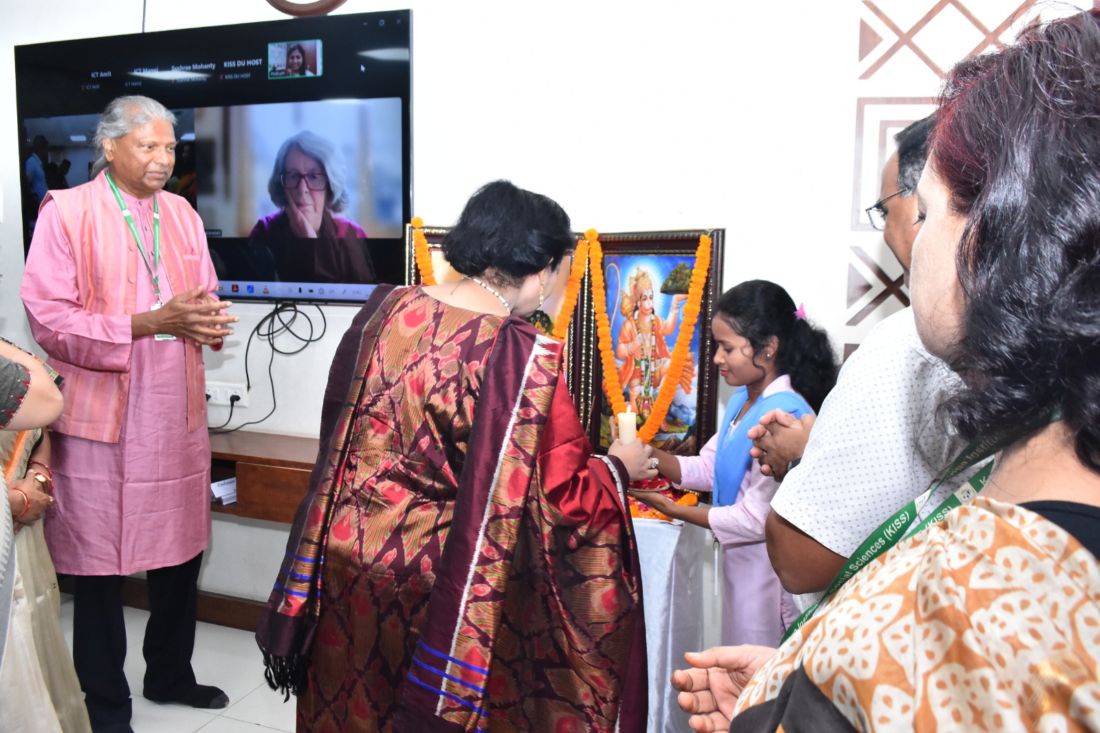 The event commenced with the ceremonial lighting of the lamp, followed by a welcome song in Kuvi language, “Aya Darti Rani,” performed by KISS students. This song, paying tribute to the Earth Goddess, Darti Rani, set a reverent tone for the day, symbolizing the peace and prosperity that the Centre for Women’s Studies aspires to cultivate.